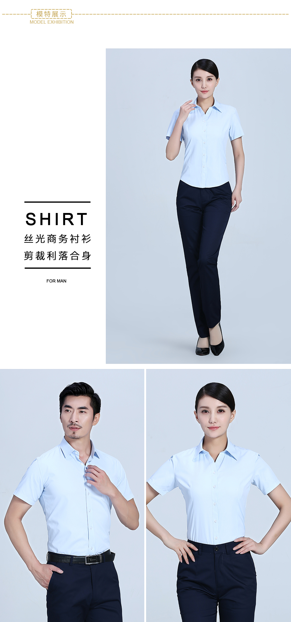 - 標簽:V領藍色經典職業短袖襯衫ZL026