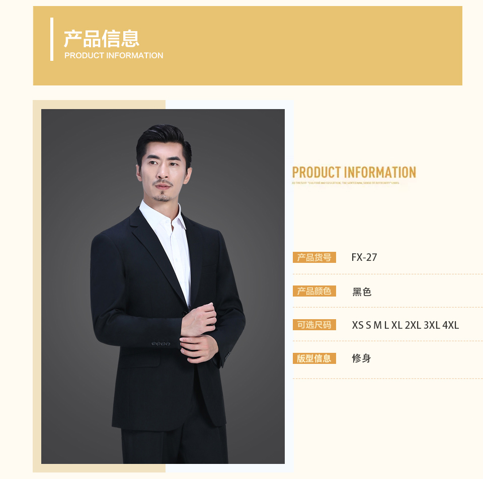 - 標簽:小平駁領黑色男職業套裝FX002