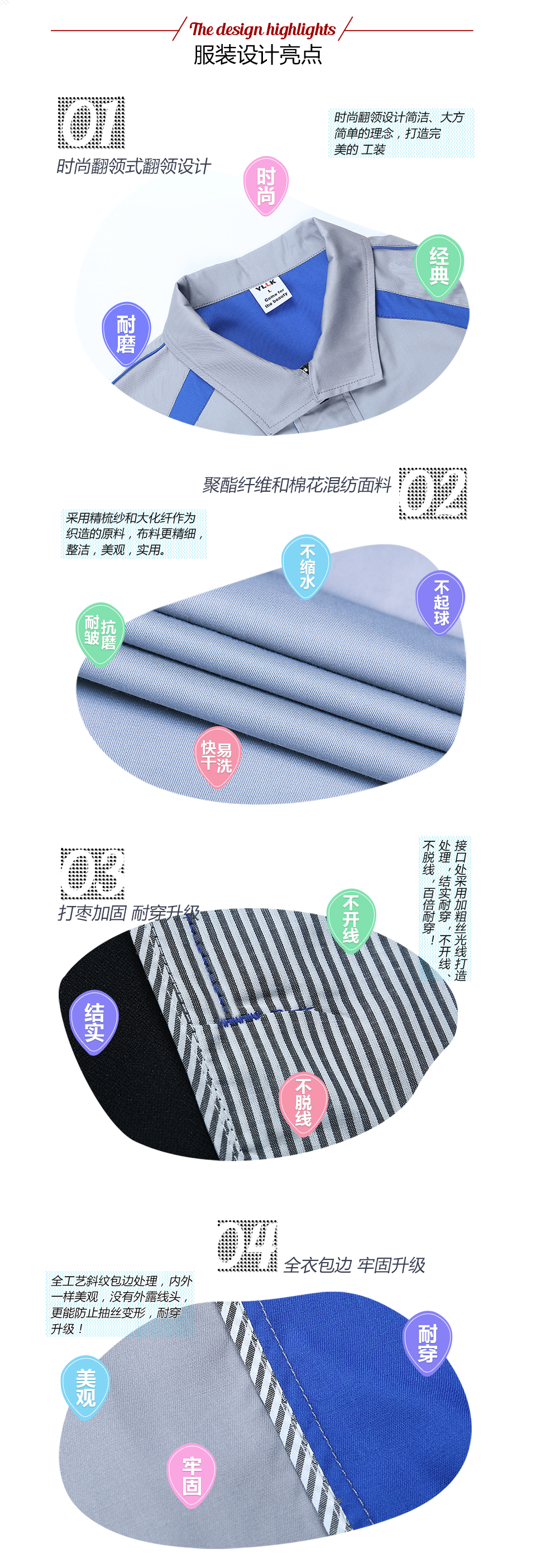 相關(guān)夏季細(xì)節(jié)拼接撞色滌棉細(xì)紋短袖工作服FY635推薦